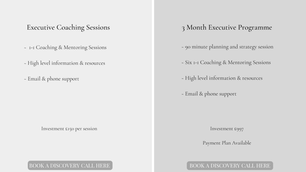 My tailored Executive Coaching and Mentoring Programme is designed exclusively for professional women, who are ready to achieve their full potential and thrive in today’s modern working environment.